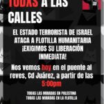 Todos los ojos en Gaza, todos los ojos en la Flotilla Ciudad Juárez 02/10/2025 Este 2 de octubre se llevarán a cabo cuatro actividades coordinadas dos de ellas simultaneas, en contra del genocidio al pueblo palestino por parte del estado criminal de Israel y en exigencia de la liberación de todes les miembros de la… Leer más »Jornada de actividades hoy jueves 02 de octubre de 2025 - ALERTA EL ESTADO GENOCIDA DE ISRAEL COMENZÓ A SECUESTRAR A LA GLOBAL SUMUD FLOTILLA