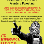 Se programan actividades en el Valle de Juárez Súmate a la lucha organizada por Palestina Ciudad Juárez 07/08/2025 El próximo sábado se llevará a cabo una Reunión Amplia de Seguimiento de la Red Frontera Palestina. El objetivo de la reunión consiste en afinar detalles para los próximos eventos de apoyo a Palestina programados en el… Leer más »Reunión Amplia de Seguimiento de la Red Frontera Palestina - Crece el repudio contra el genocidio del pueblo palestino en Ciudad Juárez y el Valle acciones organizadas